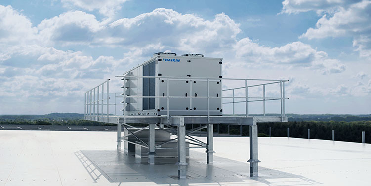 Le unità rooftop Daikin rappresentano soluzioni monoblocco plug and play in cui la sezione interna ed esterna sono precollegate. -