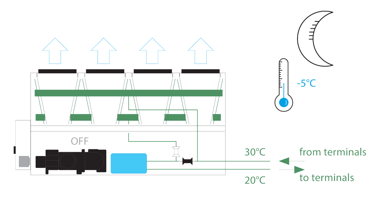 Lo scambiatore di calore a piastre saldobrasate dell'unità crea un circuito chiuso con lo scambiatore di calore in free cooling e una pompa dedicata. In questo sistema, il glicole resta confinato nel circuito chiuso. L'opzione senza glicole funziona come sistema "a circuito chiuso", fornendo una soluzione conforme ed efficiente per applicazioni nelle quali è preferibile evitare l'uso del glicole. Tra i vantaggi che ne derivano, vi sono risparmi significativi sui costi poiché evitare l'uso del glicole negli impianti del cliente significa facilitare la manutenzione e migliorare l'efficienza complessiva. Nei processi industriali, si riduce il rischio di contaminazione, assicurando che la qualità del prodotto non ne risulti compromessa.